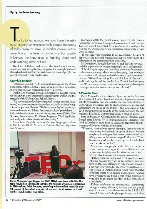 We would like to thank Dublin Life Magazine for honoring our CEO, Purba Majumder and recognizing her as a powerful voice and influencer in diversity education in Dublin, OH.
